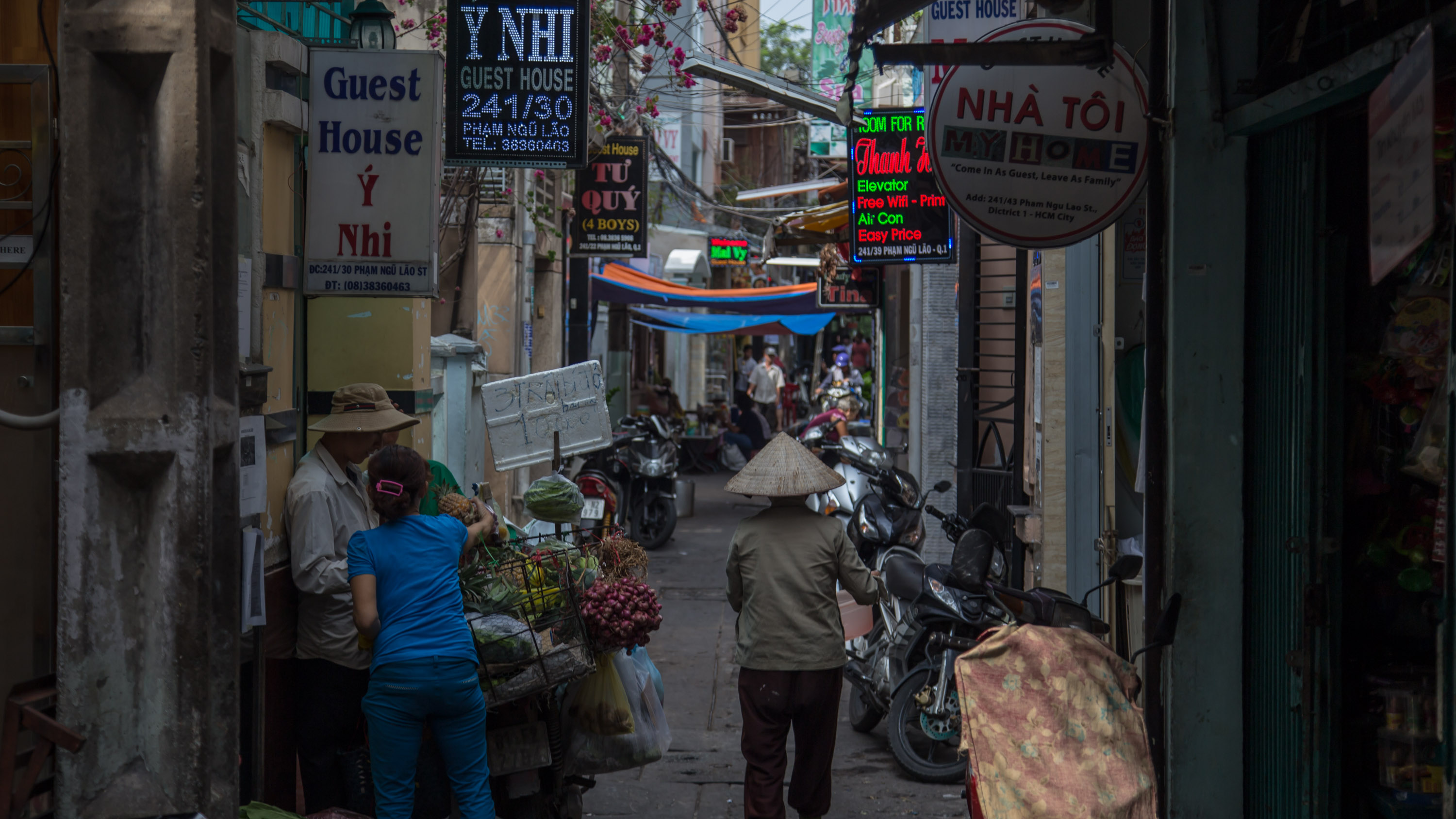 Locals doing their shopping in the cooler small streets behind Bùi Viện